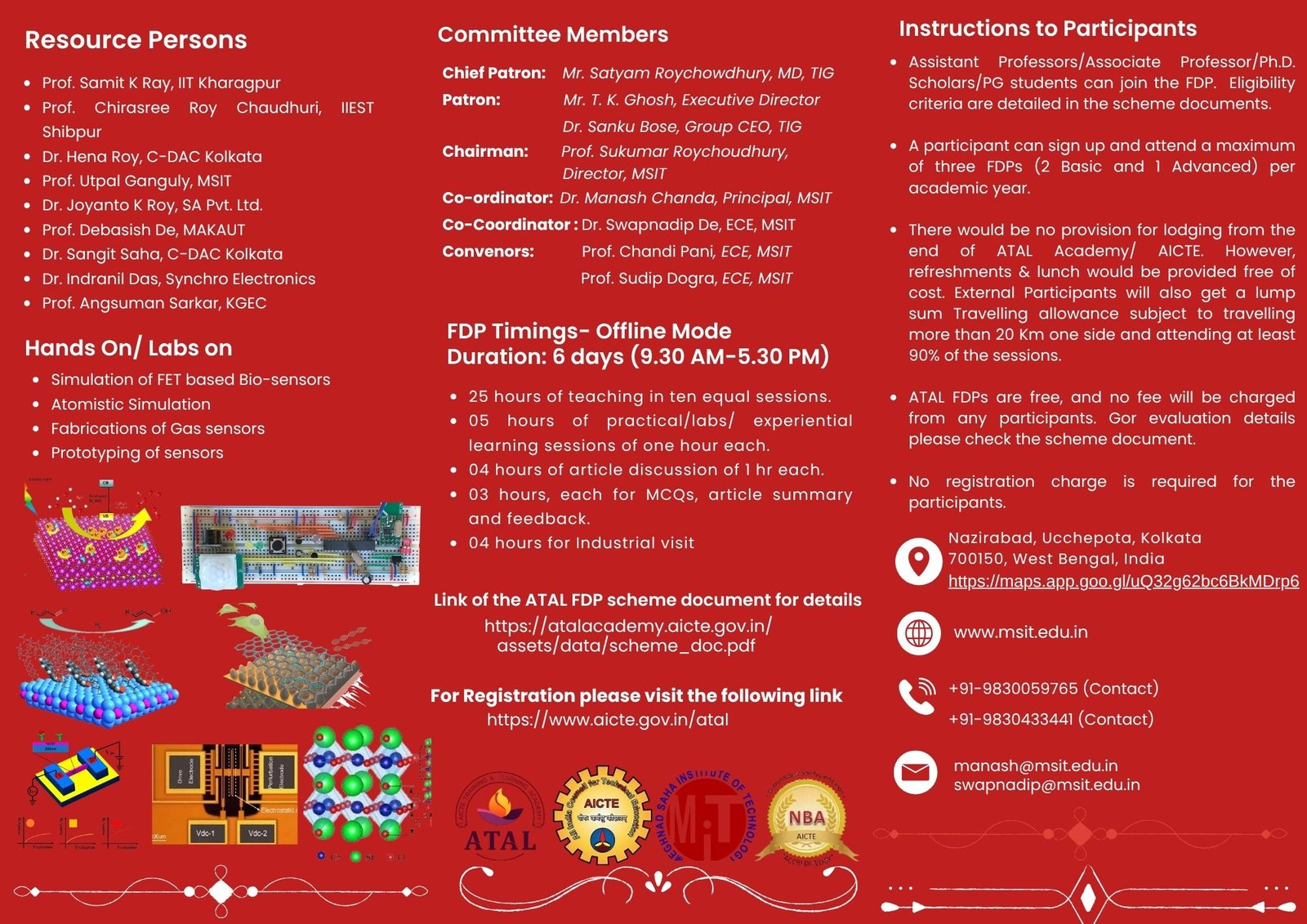 This FDP aims to provide in-depth knowledge and hands-on insights into recent advancements in semiconductor sensor technologies and the integration of nanomaterials. Sessions will be conducted by renowned academicians, researchers, and industry experts.